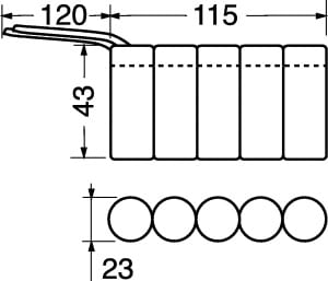 PACCHETTI BATTERIE RICARICABILI NI-CD. Composto da 5 elementi tipo SCTENSIONE:6V. CARICABATTERIE:30/8669. Capacità Batt.: 1800 mAh.