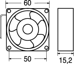 VENTILATORE ASSIALE SUPPORTO BRONZINE 60x60x15 mm. ELICA:poliestere termopl. TEMP. LAV.:-10°C÷+70°C. FATT. RUMORE:31 dB. GIRI MIN./RPM:4200. CFM:20. GRIGLIA:45/9648. Per computer, strumenti, ali-mentatori, amplificatori, tele-visori, videogiochi, videoregi-stratori.