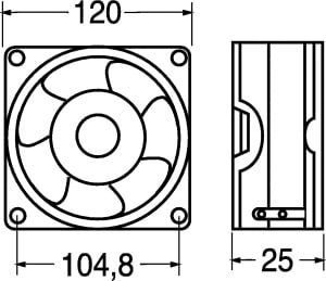 VENTILATORE ASSIALE SUPPORTO CUSCINETTI 120x120x25.4 mm. ELICA:poliestere termopl. TEMP. LAV.:-20°C÷+80°C. FATT. RUMORE:42÷44 dB. GIRI MIN./RPM:2000÷2350. CFM:64÷80. GRIGLIA:45/9655. Per applicazioni varie. Tensione: 110V.