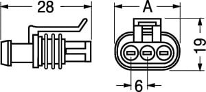 CONNETTORI PORTAFEMMINE AMP SERIE SUPER SEAL 1.5. Intercambiabili e interconnettibili con gli attuali componenti e con gli apparecchi già in uso nel settore automobilistico (sensori, controllo temperatura acqua, ecc.). Resistenti all'immersione statica edinamica in accordo alla norme IEC 529 e DIN 40050 I.P. 6.7. Resistenti a ozono,idrocarburi aromatici, sali, liquido freni, liquido anticongelante ecc. BLOCCH.:poliammide 6,6. caricato vetro approvato UL. AGGANCIO SECONDARIO:poliammide 6,6 caricato vetro approvato UL. GUARN.:gomma siliconica. TEMP.:-40°C÷+125°C. RESIST. ISOL.:200 MOHM. CONTATTI:serie 98/16308. CONNETTORI:98/15995. ESTRATTORE:98/46408. TAPPO CAVITA’:98/16341. CAPPUCCI:serie 98/16245. N.Poli: 5.