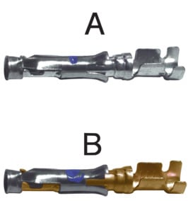 CONTATTI FEMMINA AD AGGRAFFARE AMP TIPO III+PER CONNETTORI CPC SERIE 1 -4. MATER.:ottone-acciaio inox. CORR. NOM.:13 A. CONNETTORI :98/46000 - 98/46250 – 98/46282. PINZE:98/80620. FINITURA CONT.: A – CONTATTI STAGNATI:tagnatura elettrolitica min. 2 µm distagno. B - CONTATTI DORATI:0,8 µm oro su 1,3 µm nichel nella zona di contatto, flash di oro su 1,3 µm nichel. P/n Fornit.: 66105-4.
