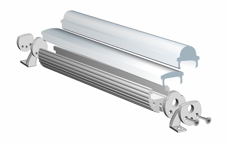 Profilo D20 tondo in estrusione di alluminio per l'installazione a plafone o sospensione. Disponibile nelle finiture di colore alluminio. Lunghezza: 1000mm.