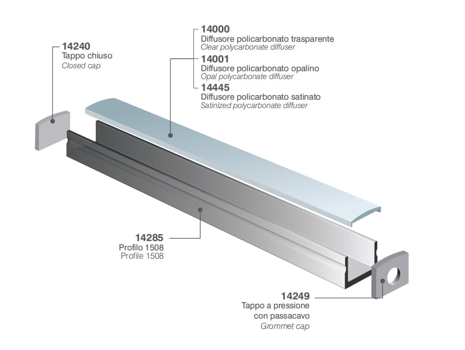 Profilo in estruso di alluminio per l'installazione a plafone per Proline 1508. IP20. Classe III. Finitura nero. Dimensione: 3000x15x8mm.
