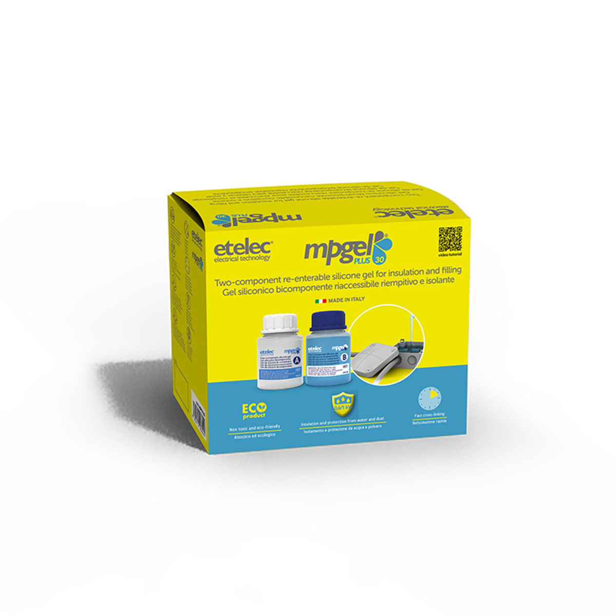 Gel bicomponente riaccessibile a reticolazione rapida per riempimenti isolanti e sigillature. Reticolazione rapida: 12 minuti a 23 ?C che permette un ridotto tempo di attesa per la messa in tensione della connessione. Ideale per isolamento di connessioneelettriche, schede e componenti elettronici in bassa tensione (0,6/1 kV).
