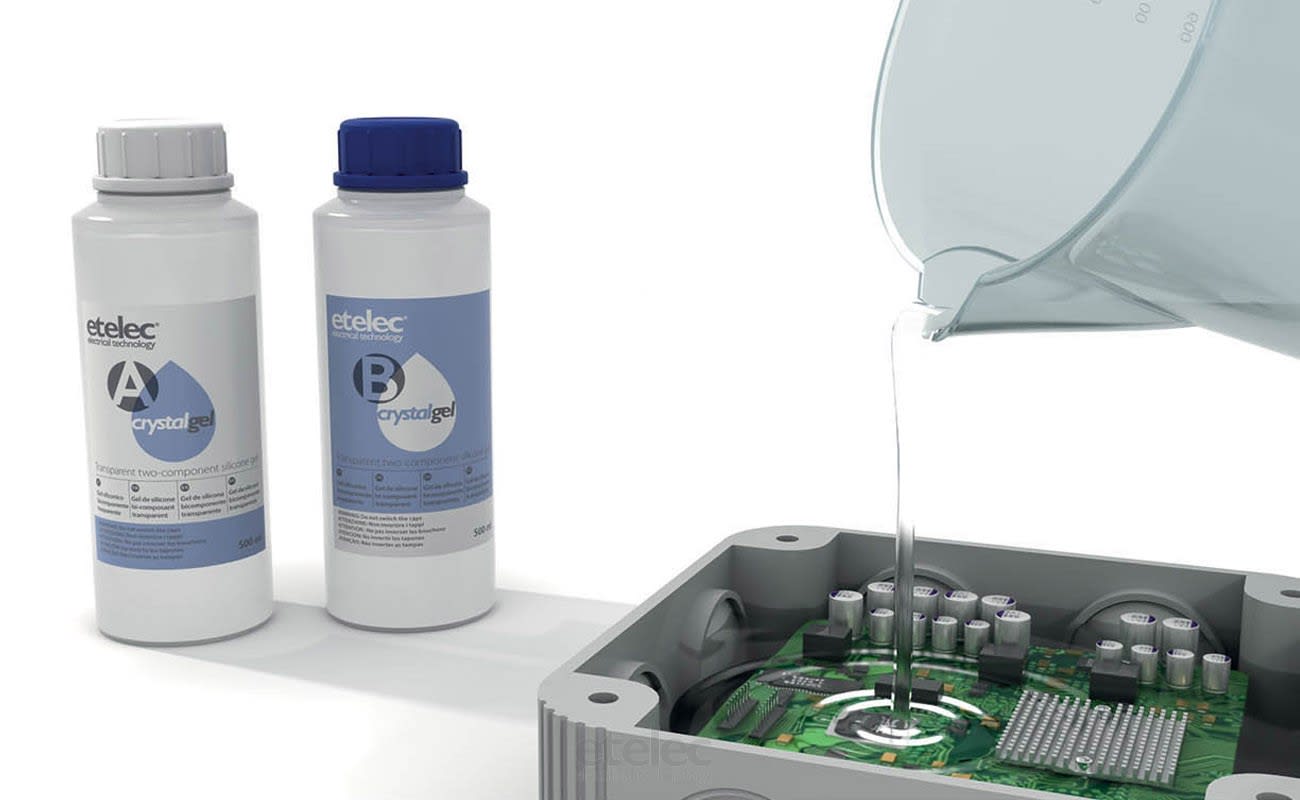 Crystalgel è un gel siliconico bicomponente trasparente e riaccessibile, per riempimenti isolanti e sigillature di scatole e cassette di derivazione contenenti connessioni elettriche fino a 1 kV o componenti elettronici, adatto per le sue caratteristichead una molteplicità di applicazioni. Crystalgel è caratterizzato da una trasparenza elevatissima che consente di mantenere la visibilità del contenuto della cassetta. I due componenti in recipienti separati garantiscono sempre il corretto rapporto di miscelazione 1:1. Crystalgel è fornito con la nuova caraffa graduata da 1 litro che consente di miscelare l’intero contenuto dei flaconi in un’unica operazione, velocizzando ancor di più l’installazione. Crystalgel può essere utilizzato, in base alla necessità, anche parzialmente, e riutilizzato successivamente all’apertura della confezione, massimizzando la resa. Elevata rigidità dielettrica: 24,5 kV/mm. Ampio campo di temperatura di impiego: da -60 a 200 oC. Una volta reticolato, Crystalgel può essere facilmente rimosso, senza l’utilizzo di utensili, anche dopo lunghi periodi di tempo. La bassa viscosità consente di colare facilmente Crystalgel e garantisce inoltre un veloce e sicuro riempimento dei contenitori e degli interspazi. Crystalgel è non tossico, non irritante, privo di odori e senza solventi, ed è classificato come prodotto non pericoloso ai sensi del Regolamento Europeo n. 1272/2008 (CLP). Idoneo per riempimento di cassette di derivazione; isolamento di connessioni elettriche 0,6/1 kV; isolamento di schede e componenti elettronici. Trasparente cristallino. Non tossico. Riaccessibile. Ecologico. Facilmente colabile. Nessuno spreco grazie ai flaconi separati e alla caraffa graduata. Ottimo isolamento elettrico. Protezione dagli agenti atmosferici (pioggia, umidità , polvere) e dall’intrusione di animali, insetti, foglie. Buona resistenza meccanica. Senza scadenza. Riutilizzabile dopo l’apertura.