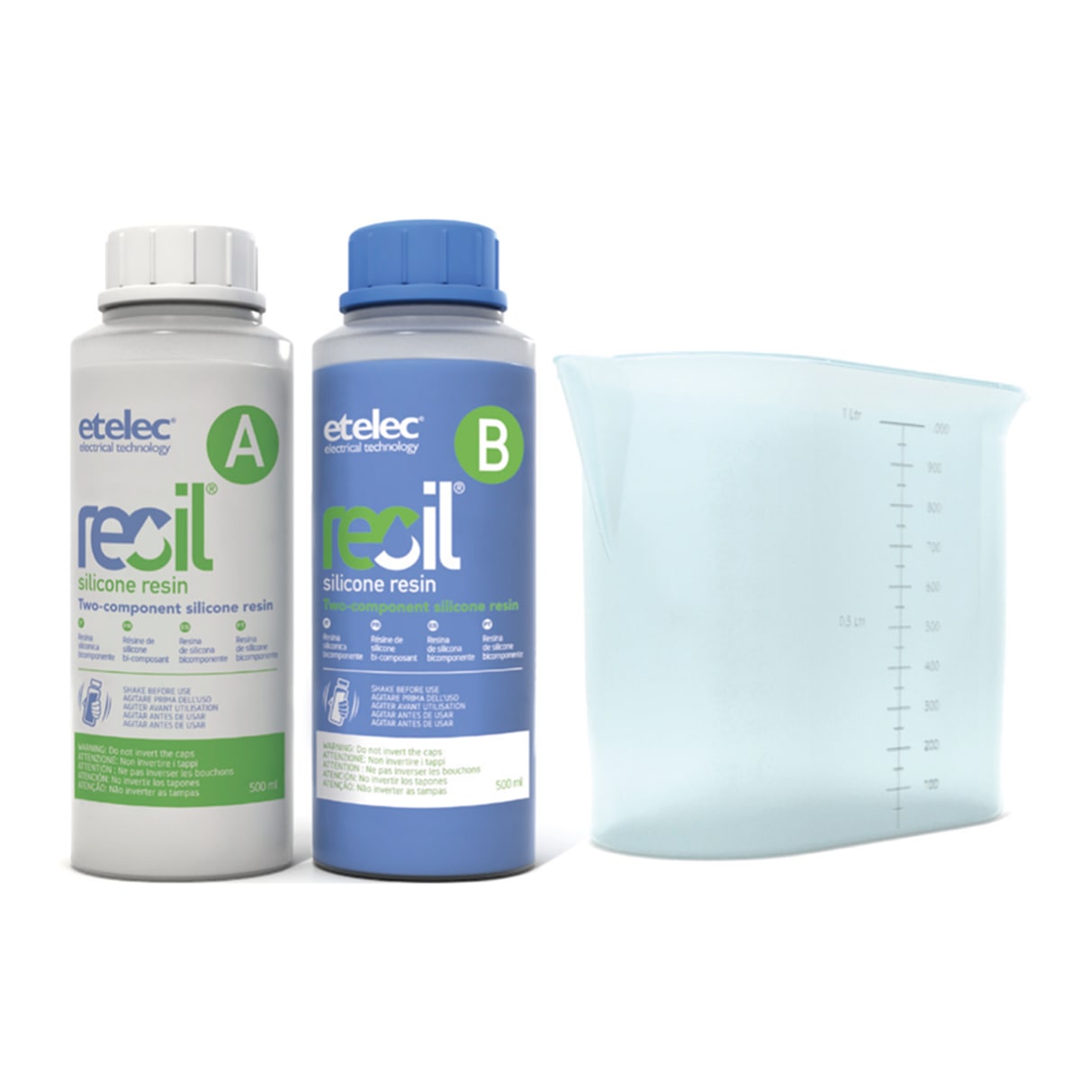 Resil 100 - Resina siliconica bicomponente riaccessibile - 1 litro. Contenuto della confezione: 2 flaconi trasparenti da 500 ml; caraffa graduata da 1 litro. Applicazioni: • Riempimento di cassette di derivazione • Isolamento di connessioni elettriche 0,6/1 kV • Isolamento di schede e componenti elettronici • Ideale per giunzioni di bassa tensione Resil Joint® in linea (Serie RJA) con gusci Serie GSA e in derivazione (Serie RJB) con gusci Serie GSB. Vantaggi: • Riaccessibile • Utilizzabile parzialmente in base alle necessità • Miscelabile in unica soluzione nelle cara#e fornite • Facilmente colabile • Reticolazione rapida e non esotermica • Ottimo isolamento elettrico • Non igroscopica • Buona resistenza meccanica che impedisce il contatto accidentale con parti in tensione • Protezione dagli agenti atmosferici (pioggia, umidità) dalla polvere e dall'intrusione di animali, insetti, foglie • Autoestinguente di classe V0 • Non tossica (priva di isocianati) • Ecologica • Caraffa riutilizzabile facile da pulire