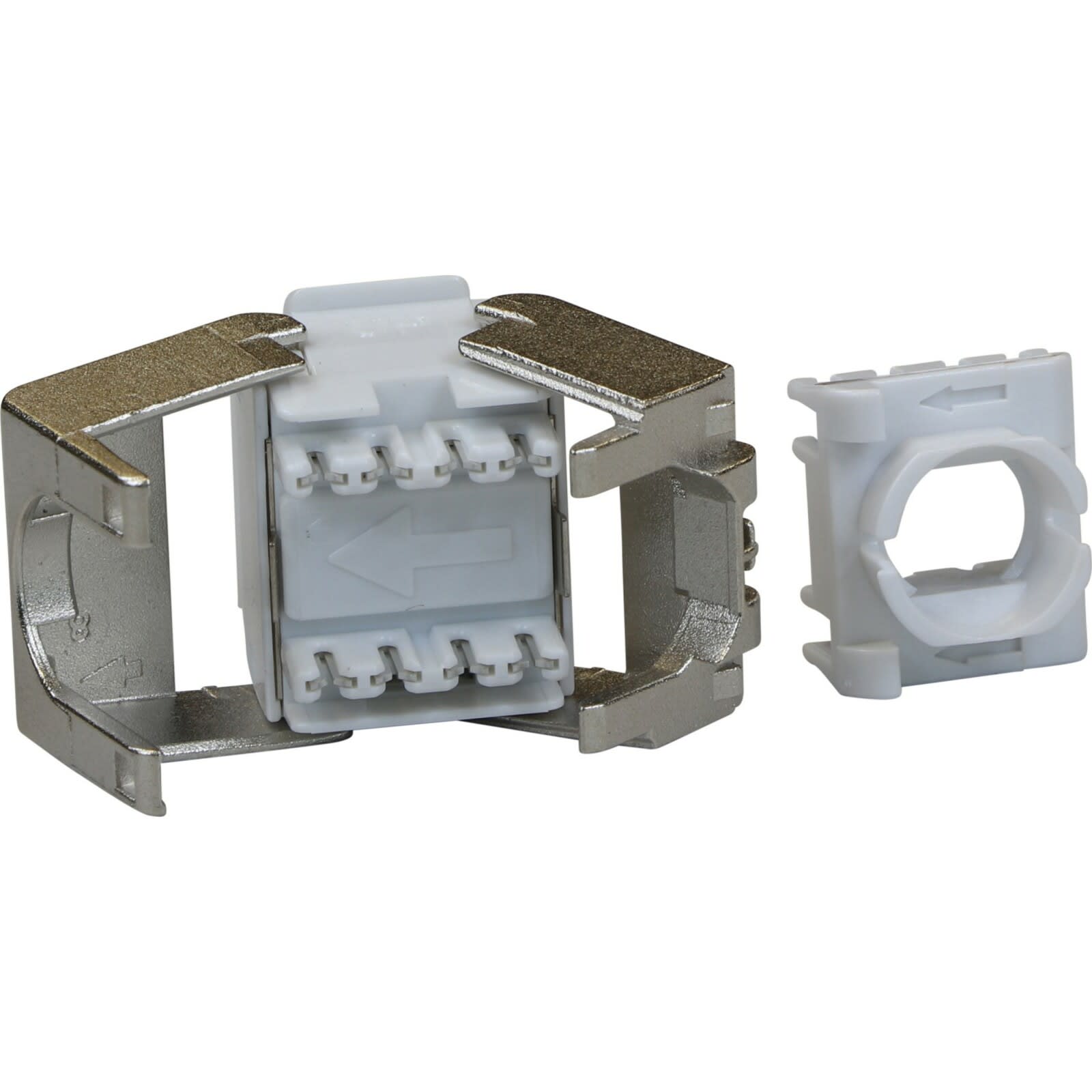 Jack Keystone Excel categoria 6A, UTP, basso profilo, toolless - bianco. Il Jack Keystone non schermato di Excel, con profilo basso, di categoria 6A, è un connettore RJ45 per terminazione toolless avente dimensioni ridotte. Le dimensioni ridotte consentono di alloggiare direzioni con ingresso a cavi multipli, quando questo jack è montato in una scatola da incasso a profondità standard. Ciò consente molte opzioni di montaggio tra cui otturatori a livello nella presa, come anche otturatori angolati più comuni, utilizzati per i jack keystone. Il connettore è prodotto con polimero di alta qualità, con chiusura posteriore metallica pressofusa, a "farfalla". • Sistema garantito 25 anni • Più colori disponibili • Basso profilo: profondità complessiva 28 mm • Supporta 10 Gigabit Ethernet • Progettazione con terminazione toolless • Verifica ISO11081 seconda edizione, effettuata da terzi