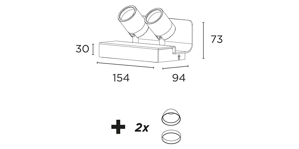 Apparecchio a parete o sotto con sorgente luminosa a LED chip on board (COB) alimentata a corrente costante tramite alimentatori elettronici incorporati nell?apparecchio. La sorgente e installata su un gruppo ottico orientabile indipendente, grazie ad uno snodo proprietario. Le regolazioni sul piano orizzontale sono gestibili nei 350?, mentre sul piano verticale sono limitate a 90?. Corpo ottico in alluminio pressofuso con funzione dissipante lega 6060. Supporto in metallo verniciato a liquido. Ottiche di riflessione in policarbonato verniciato finitura speculare atta a direzionare il flusso luminoso; Fasci disponibili: Medium, Large e Wide. Ottica ed anello decorativo da ordinarsi separatamente.