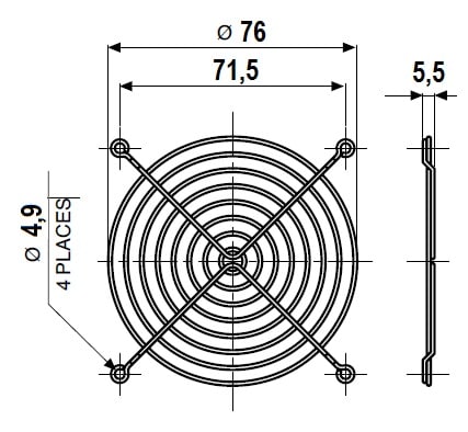 Griglia metallica per ventole, in filo d'acciaio AISI C1010 con finitura nichel-cromo