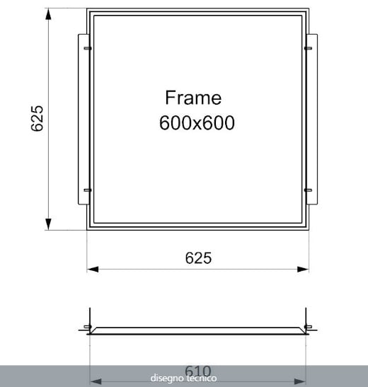 Cornice per cartongesso 600x600x165mm, comprese staffe laterali, viti e rondelle