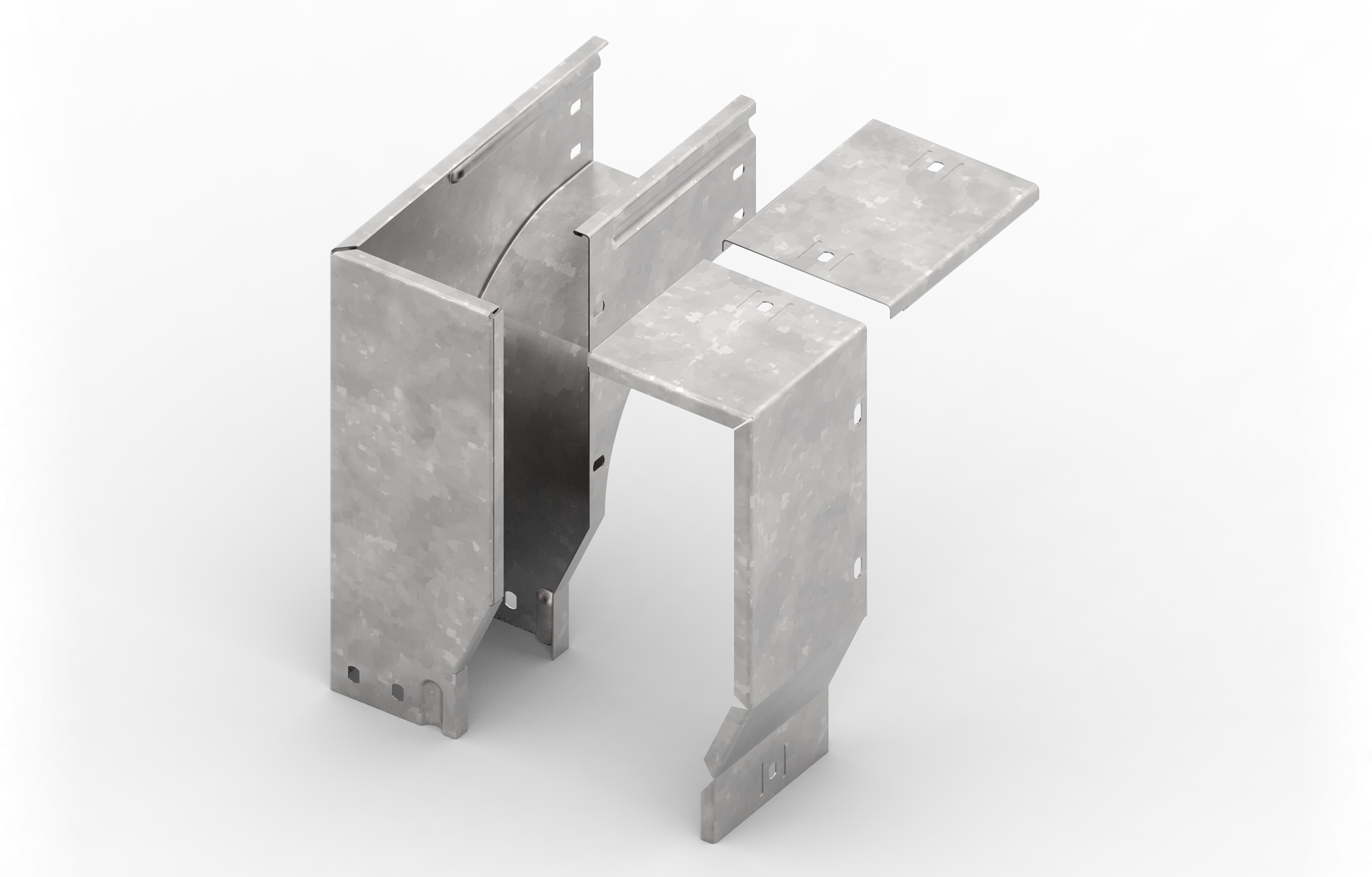 Articolo della serie FEMI3 costituito da curva sghemba 90° dx vs. basso, in acciaio al carbonio con rivestimento anticorrosivo di zincatura a caldo, applicato per immersione dopo lavorazione in bagno di zinco fuso a circa 450°C, raffreddato in aria o in acqua. Si raccomanda per installazioni esterne, rurali, industriali o interne con ambiente aggressivo.