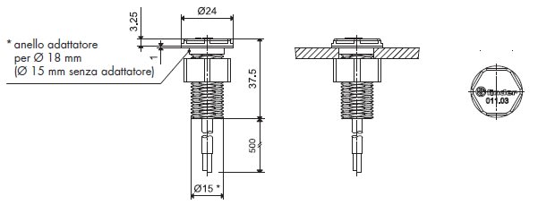 Elemento fotosensibile da incasso IP65 • Lunghezza del cavo 500mm • Senza cadmio • Non polarizzato • Doppio isolamento verso l'alimentazione del crepuscolare