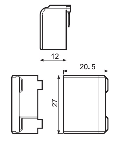 Modulo per pulsanti luminosi (230 V AC), In caso di utilizzo del relè serie 27 con pulsanti luminosi è necessario il montaggio in parallelo del modulo alla bobina del relè (fino a 24 pulsanti luminosi da 1 mA max, 230 V AC). Il modulo deve essere inserito direttamente sul relè.
