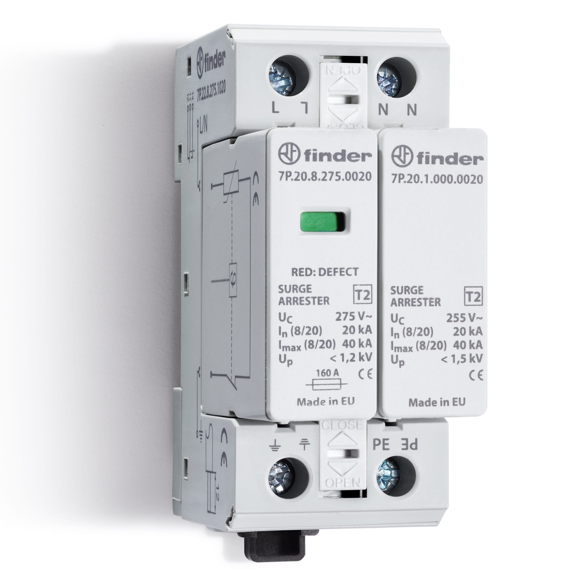 FINDER SPA - FIN7P2282751020 SPD CLASSE2 MONOFASE 2P 275VAC 1+1 20KA - 7P2282751020