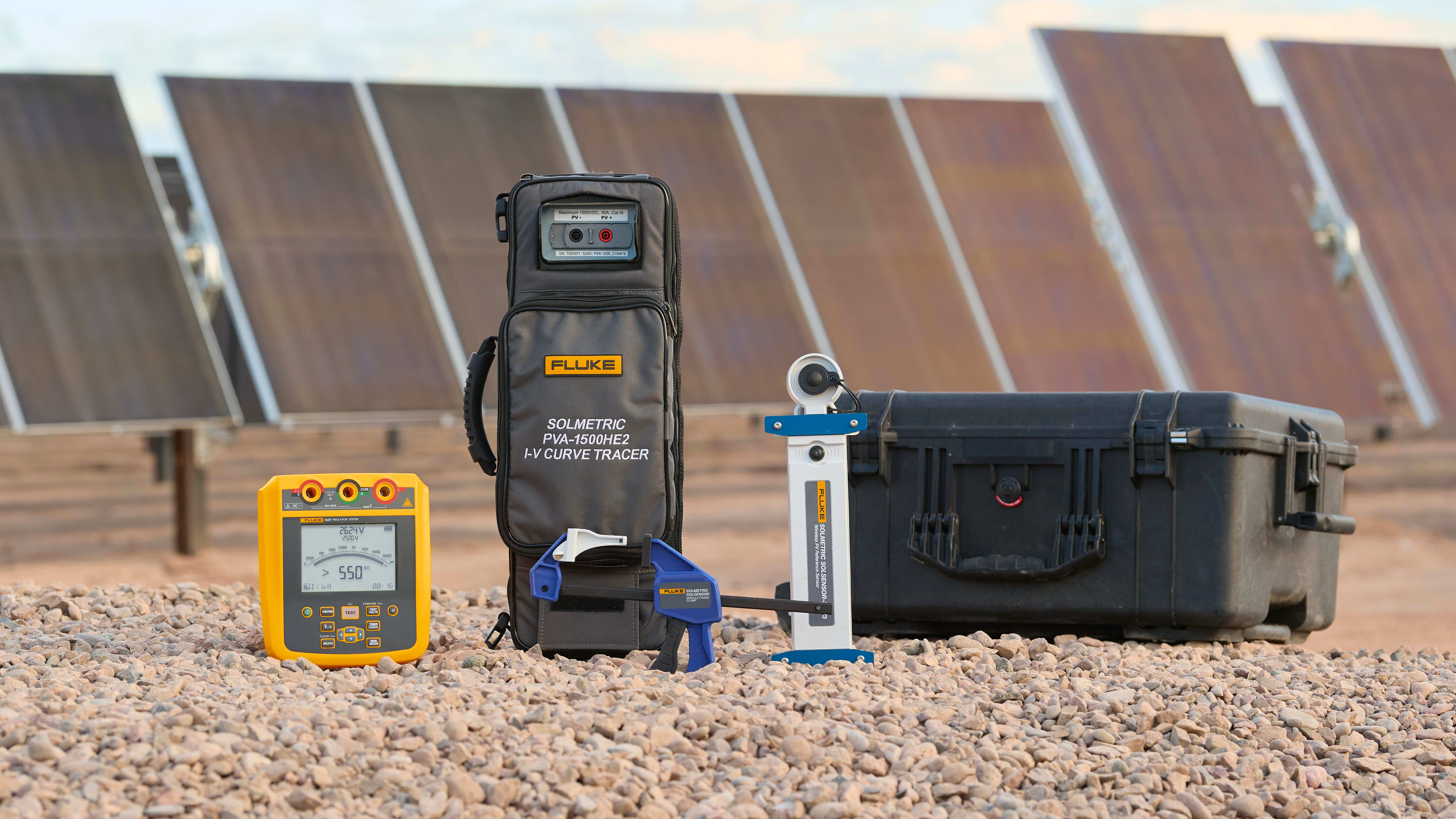 Questo kit di strumenti combina la precisione del tracciatore di curve I-V Fluke Solmetric PVA-1500HE2 con le funzionalità avanzate del tester per isolamento Fluke 1537, garantendo una diagnostica completa per i pannelli solari. PVA-1500HE2 offre una serie di funzionalità avanzate, incluso il tracciamento della curva IV ad alta produttività, che fornisce dati sulle prestazioni rapidi e dettagliati. L’interfaccia utente intuitiva consente una facile navigazione e l'analisi in tempo reale, consentendo l'identificazione immediata di potenziali problemi. A integrazione, il tester di isolamento 1537 fornisce test di resistenza di isolamento fino a 2500 V, aiutando a rilevare potenziali rischi per la sicurezza e prevenire guasti al sistema. Insieme, questi strumenti consentono ai professionisti del settore del solare di garantire l'efficienza, l'affidabilità e la sicurezza degli impianti solari in tutta sicurezza, dalla messa in servizio e manutenzione ordinaria alla risoluzione dei problemi e all'ottimizzazione delle prestazioni.