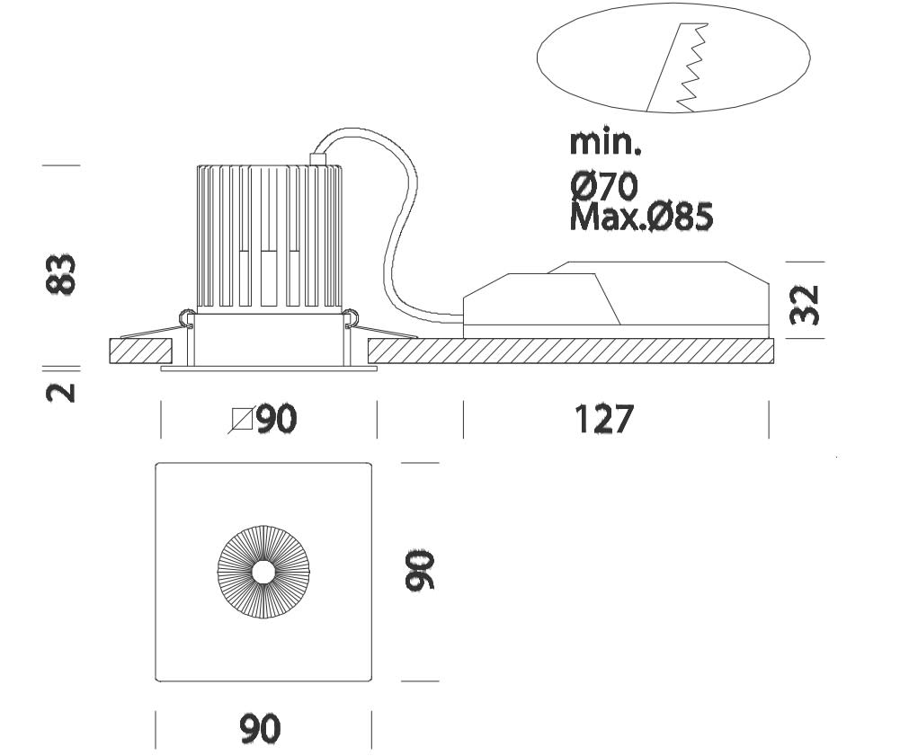 Einbaudurchmesser - 70...85 mm