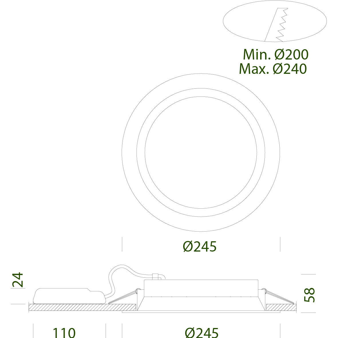 Einbaudurchmesser - 200...240 mm