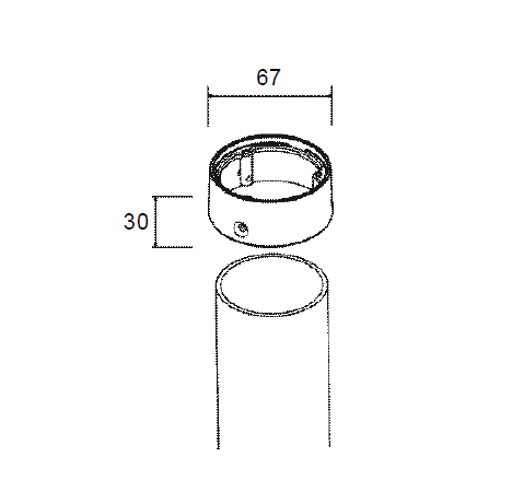 Raccordo per pali standard Ø 60 in alluminio pressofuso primario. Adattabile a qualsiasi palo ø 60 mm. Dimensione: 67x30mm.