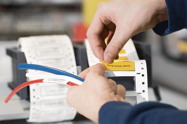 Rapporto di restringimento 2:1. Zero alogeni. Bassa propagazione, densità e tossicità dei fumi. Pretranciati a 50 mm, 25 mm e 16 mm come standard, altre lunghezze disponibili su richiesta. Disponibile in bianco e giallo. Per diametri di cavo da 38,1 mm a1,2 mm. Consegna in comode scatole per lo stoccaggio. Il TLFX DS è un materiale termorestringente zero alogeni approvato per l'industria ferroviaria europea con rapporto di restringimento 2:1, fornito pretagliato e disposto in un comodo formato a scaletta Ladder Style. Le speciali caratteristiche del materiale mostrano una bassa propagazione, densità e tossicità dei fumi. Il formato prespezzonato non solo permette la stampa su entrambi i lati del marcacavo, ma permette anche all'utente di scegliere e prelevare con facilità il marcacavo desiderato. La guaina viene preparata in modo da permettere una stampa eccellente grazie alle stampanti HellermannTyton.