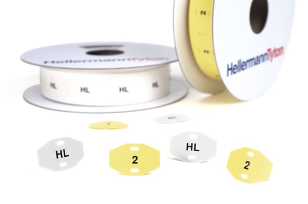 Targhetta limited fire hazard. Zero alogeni. Per cavi di grandi dimensioni o fasci di cavi. Stampabile a trasferimento termico o a incisione laser. Elevata flessibilità e resistenza meccanica. Fornita in bobine in comodi imballi. Le TAGLF sono delle TIPTAG sviluppate per l'utilizzo in applicazioni legate al trasporto di massa. Il materiale è in poliolefina reticolata zero alogeni a bassa propagazione della fiamma, bassa tossicità e densità dei fumi. Queste targhette vengono fissate sui cavi tramite fascette e sono quindi adatte anche a lavori di retrofit. Il materiale viene condizionato per essere stampato sia a trasferimento termico che con incisione laser. Vengono fornite in un pratico formato a scaletta da cui prelevare le singole targhette per l'applicazione tramite fascette. Da stampare con la gamma premium di stampanti a trasferimento termico e ribbon HellermannTyton.