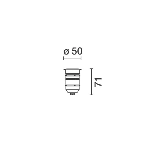 Apparecchio per illuminazione ad incasso, applicabile a parete, pavimento e soffitto (solo tramite molle), finalizzato all'impiego di sorgenti luminose a led monocromatici di colore bianco, per illuminazione, ottica fissa, alimentato in corrente continuaa 350mA Max. La cornice, di forma rotonda, ha dimensione D = 50 mm senza viti a vista, il corpo e la cornice sono realizzati in acciaio inox AISI 304 con vetro in superficie sodico calcico extrachiaro. 3,8W. 490 lm. 2700K