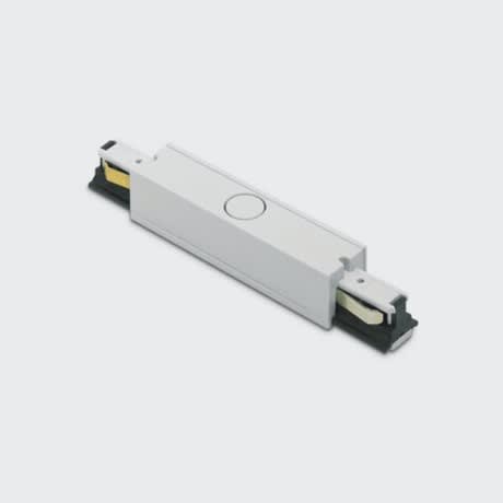 MZ63 - Giunto diretto per binario basso voltaggio 48V. Permette la connessione elettrica e meccanica tra due binari conseguenti e ilcollegamento all'unità di alimentazione remota o cavo di alimentazione per sospensione. Include due testate di chiusura per leestremità del binario non cablate. Connessione meccanica sul binario. Dimensione: 129x21x21mm. Bianco.