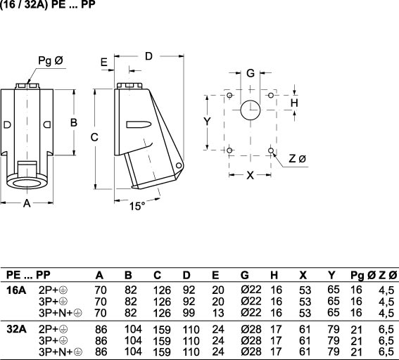ILME - ILMPE 1623 PP PR.PAR.300/500HZ 16A - PE 1623 PP