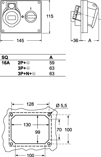 ILME - ILMSQ 1663 PR+INT.220V 16A 3P QUADRO - SQ 1663