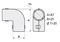 Curva a 90° ispezionabile in 2 pezzi si mmetrici, per due tubi rigidi dello stesso diametro. Autoestinguente UL94: V0, realizzata in PVC resistente UV. Garantisce una resistenza GWT 850° (EN 60695-2-11). grigio RAL 7035. Diametro 20 mm. Assicura un gradodi protezione IP40.