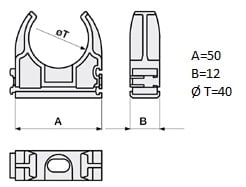 Supporto fissatubo a scatto diametro 40 mm, in ABS, con incastro laterale per permettere l'accoppiamento anche tra FIS di diametri diversi. Idoneo per montaggio su guida GUI. Halogen Free e resistente UV. Colore grigio RAL 7035. Ideale per garantisce stabilità e facilità di installazione negli impianti elettrici a vista.