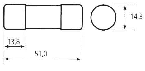 Corpo in steatite adatto a sopportare sbalzi termici molto elevati, riempito di sabbia di quarzo. L’elemento di fusione è composto da una lamina di rame ricoperta in argento. La doppia capsula ricoperta d’argento evita l’ossidazione e mantiene le caratteristiche immutate nel tempo. Tutti i fusibili cilindrici sono progettati per ridurre al minimo la potenza dissipata il cui valore è indicato sul corpo del fusibile stesso. Fusibili CH standard. Grandezza: CH14, SCH14, CH/P14