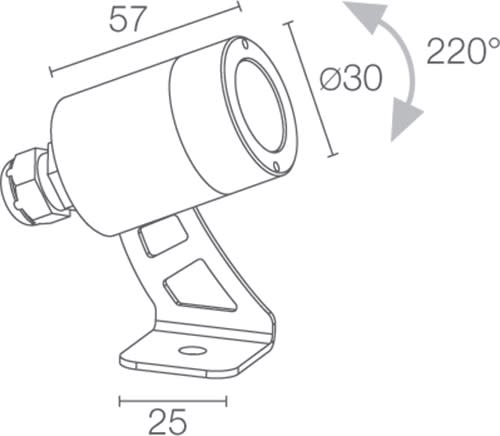 Proiettore da esterno (non adatto per immersione); su superficie (soffitto, parete, pavimento, picchetto); corpo e ghiera in acciaio inox AISI 316L; schermo in vetro trasparente temprato. 3W. 500mA. Blu. 40°. 145 lm