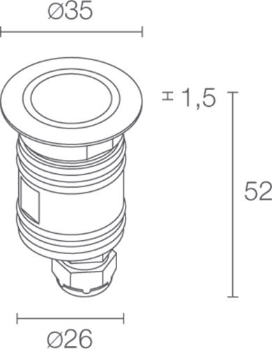 Incasso uplight da esterno e immersione; a incasso (parete, pavimento), profondità massima 10 m; corpo e ghiera in acciaio inox AISI 316L, schermo in vetro temprato trasparente. 316L. 2W. 4000 K. 20°. 145 lm