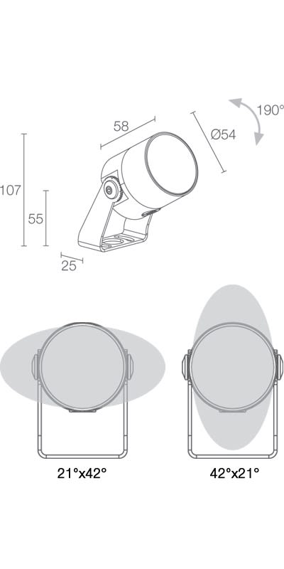 Proiettore da esterno; su superficie (soffitto, parete, pavimento, picchetto). 5W. 500 mA. RGB. 45°. Colore inox. 253 lm