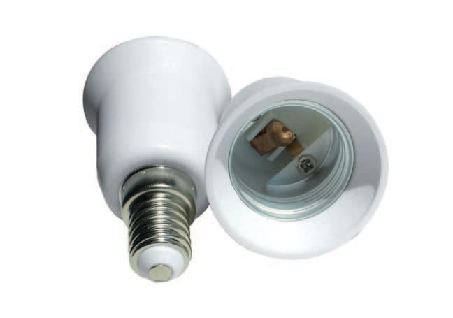 Adattatore da attacco E14 a lampada E27 in metallo e termoplastico. IP20. Finitura bianco.
