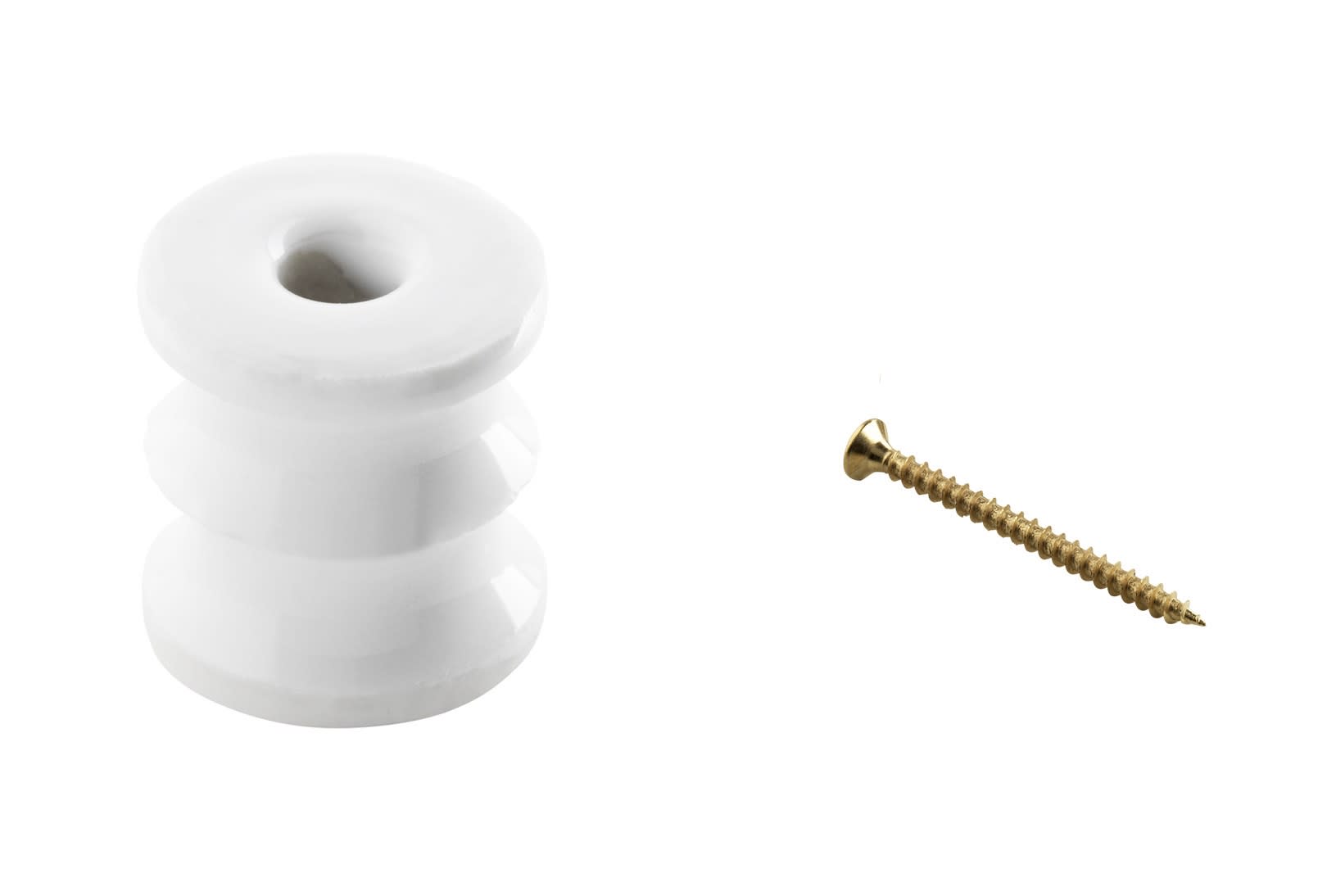 c'era una volta, vintage Isolatore doppio ELITE in fine porcellana bianca diametro 18 mm - H 20 mm - Con vite ottonata