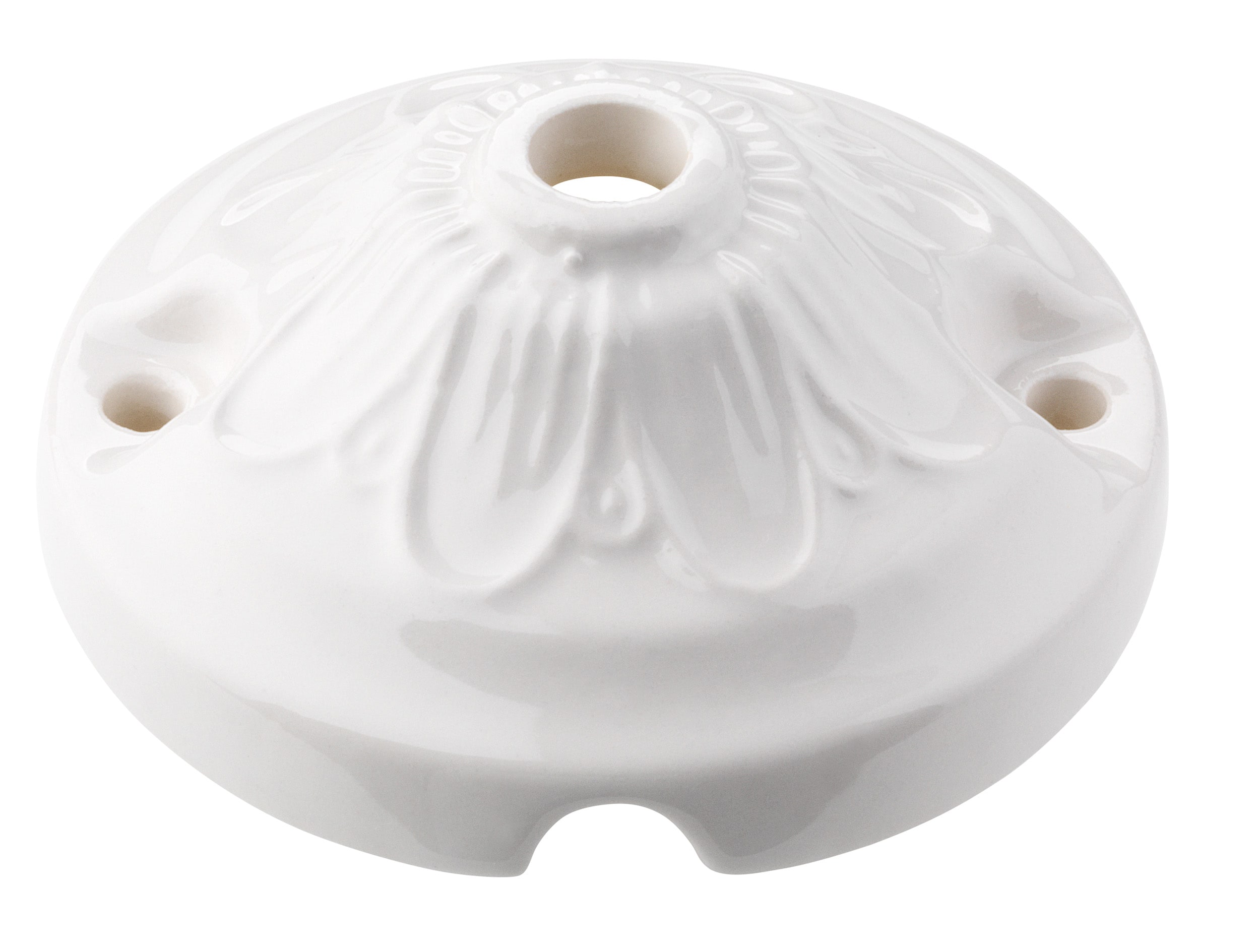 SERIE ELITE Rosone lavorato in porcellana bianca completo di viti - diametro 90 mm - H 42 mm