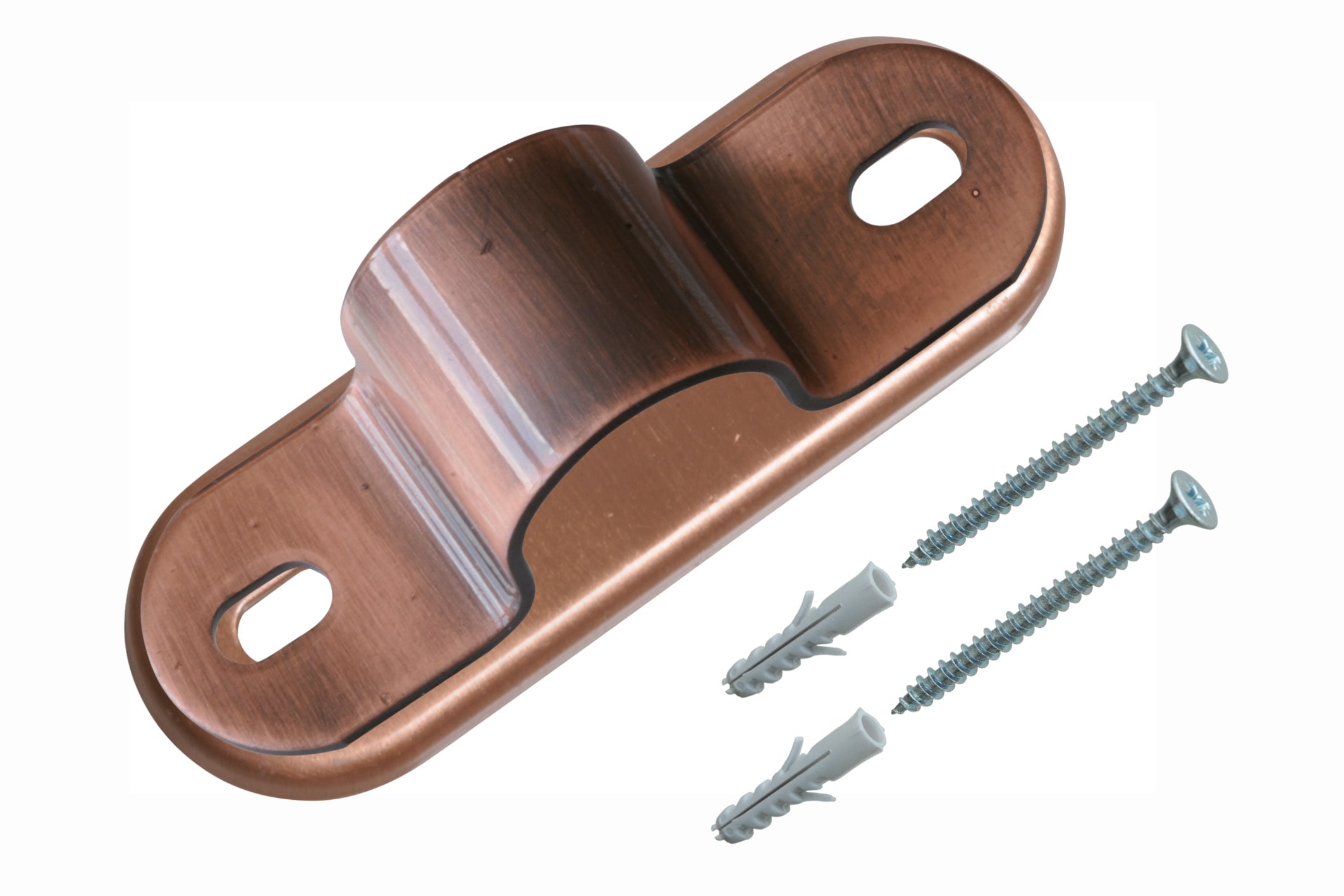 SERIE RAME Clips fermatubo in rame anticato con piastrina completo di viti e tasselli per tubi diametro 16 mm