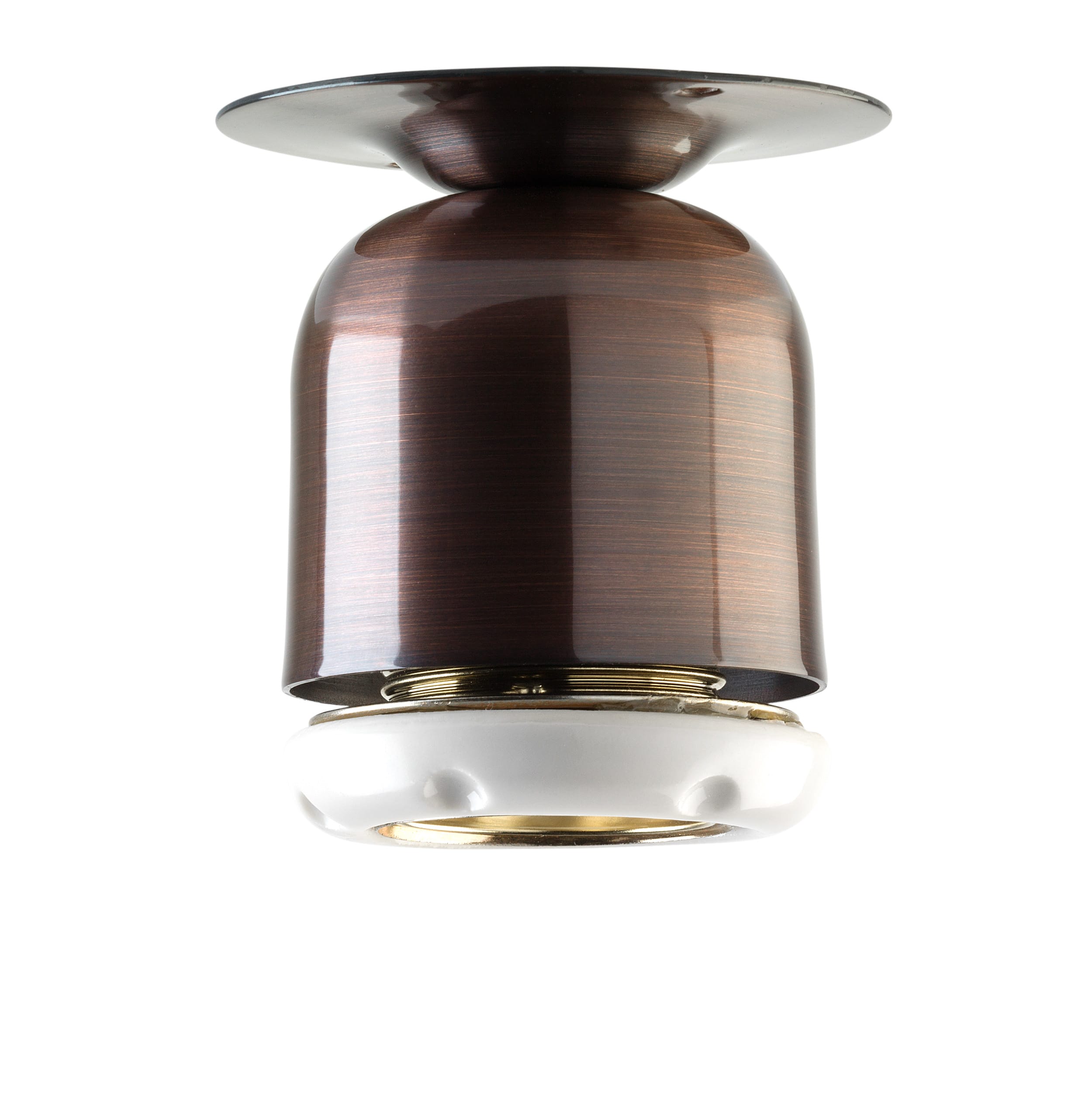 SERIE CLASSIC - IN RAME ANTICATO Spot diritto a parete o soffitto - da usare singolo od in abbinamento a base rame o base porcellana 2.0 -Attacco E27 - Potenza 60W - Grado di protezione IP 20 Con ghiera in porcellana bianca