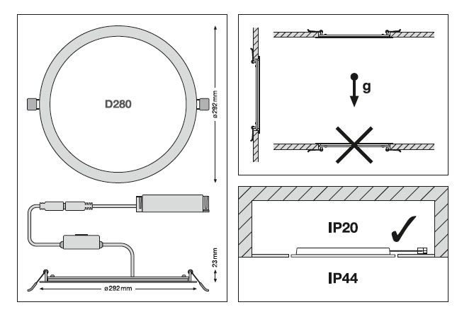 DOWNLIGHT SLIM con corpo in alluminio, efficienza luminosa fino a 100 lm/W e tecnologia DALI-2. Caratteristiche del prodotto: Driver DALI-2 esterno incluso. Alloggiamento in alluminio molto sottile con soli 23 mm di altezza. Efficienza luminosa elevata: fino a 100 lm/W. Funzione Multi Lumen: step di potenza selezionabili. Funzione Multi Color: 3000 K e 4000 K. Tipo di protezione: IP44. Apparecchio disponibile in 5 misure per diversi tagli. Durata (L70/B50): 50.000 h (temperatura a Ta = 40 °C).Vantaggi del prodotto: Profondità di installazione ridotta. Altamente versatile grazie alla possibilità di selezionare CCT e livelli di potenza (Multi Color - Multi Lumen). Distribuzione della luce molto omogenea. Driver esterno con funzionalità di cablaggio passante a 3 poli per flessibilità e facile installazione. Illuminazione di emergenza possibile con il box di conversione di emergenza LEDVANCE. Risparmio di energia fino al 60% rispetto agli apparecchi con lampade CFL. Aree di applicazione: Sostituzione diretta per gli apparecchi funzionanti con lampade fluorescenti compatte. Illuminazione generale. Aree pubbliche. Scale. Corridoi. Hall. Negozi. Apparecchiatura / Accessori: Accessori per montaggio a plafone disponibili.