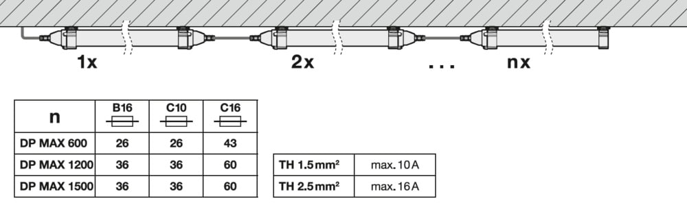 Max. Anzahl der Leuchten pro Leitungsschutzschalter C16: