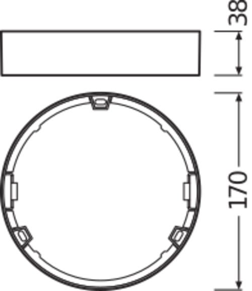 Cornice di montaggio a plafone, forma rotonda. Caratteristiche prodotto: Bassa profondità di montaggio. Robusto corpo in policarbonato. Accessori di montaggio inclusi. Vantaggi prodotto: Ingresso del cavo su un lato per una connessione elettrica a basso profilo. Installazione semplice grazie allo spazio per il foro. Aree applicative: Illuminazione generale. Aree pubbliche. Scale. Corridoi. Hall. Negozi.