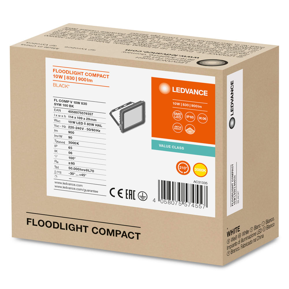LEDVANCE - LDVFLCOMP10830B FL COMP V 10W 830 SYM 100 BK LEDV - FLCOMP10830B