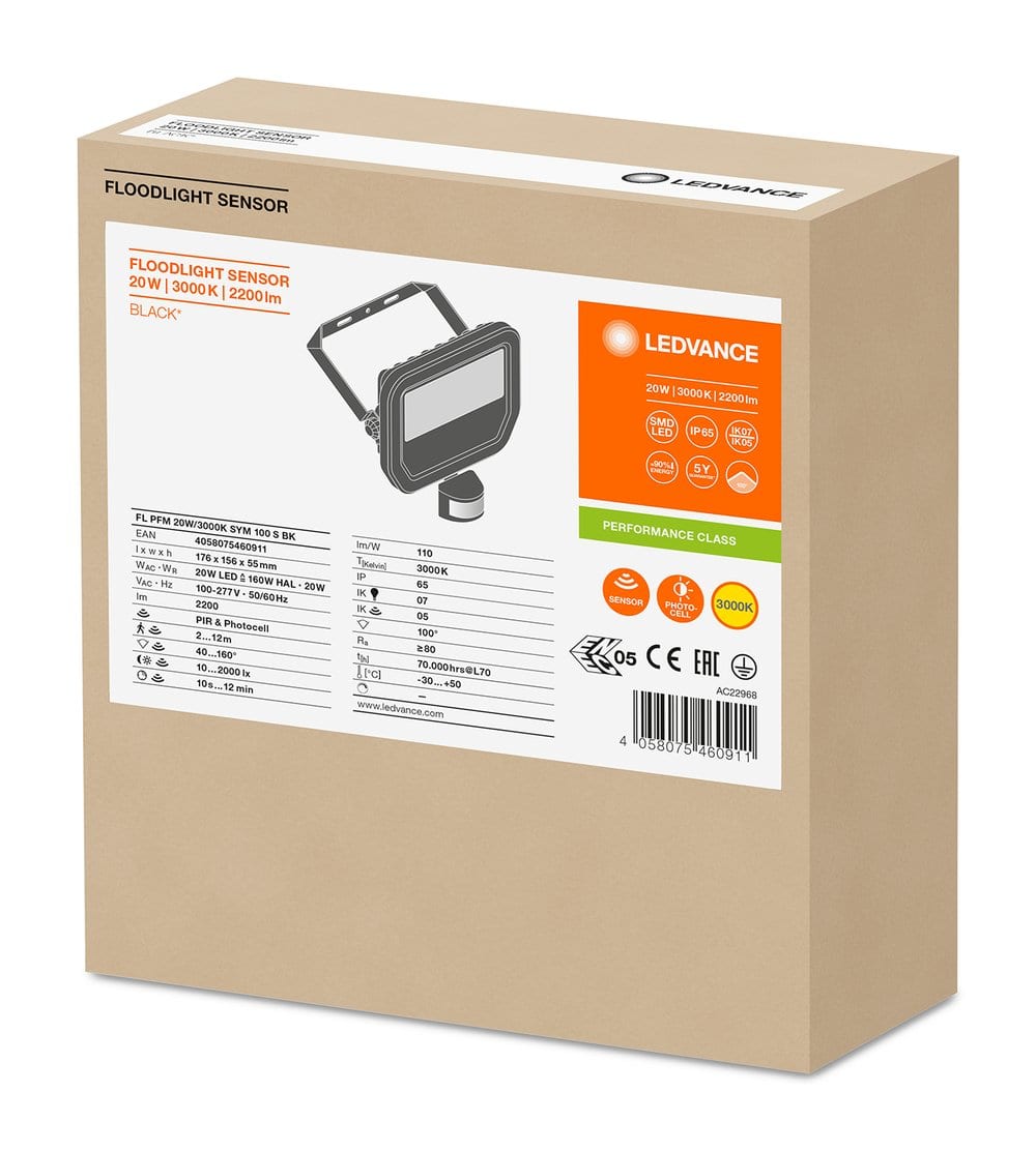 LEDVANCE - LDVFLOOD20830BSG3 FL PFM 20W/3000K SYM 100 S BK LEDV - FLOOD20830BSG3