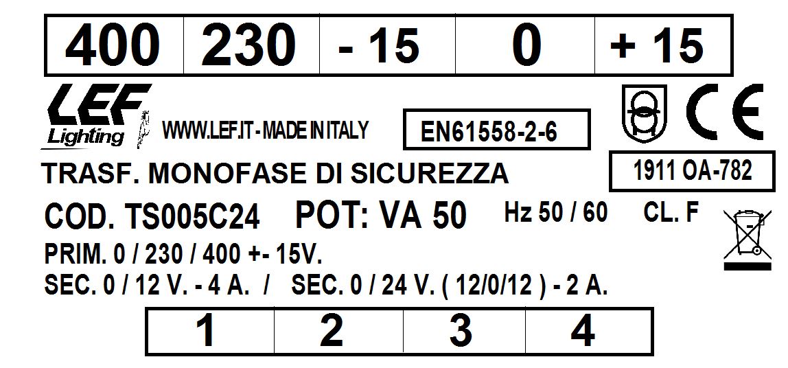 LEF LIGHTING SRL - LEFTS005C24 T.M. 50VA 230.400V / 12 24V - TS005C24