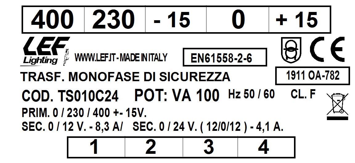LEF LIGHTING SRL - LEFTS010C24 T.M. 100VA 230.400V / 12 24V - TS010C24