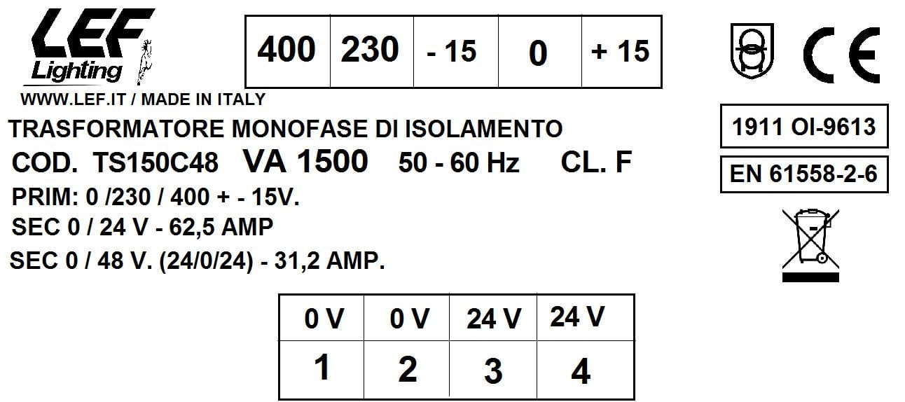 LEF LIGHTING SRL - LEFTS150C48 T.M. 1500VA 230.400V / 24 48V - TS150C48