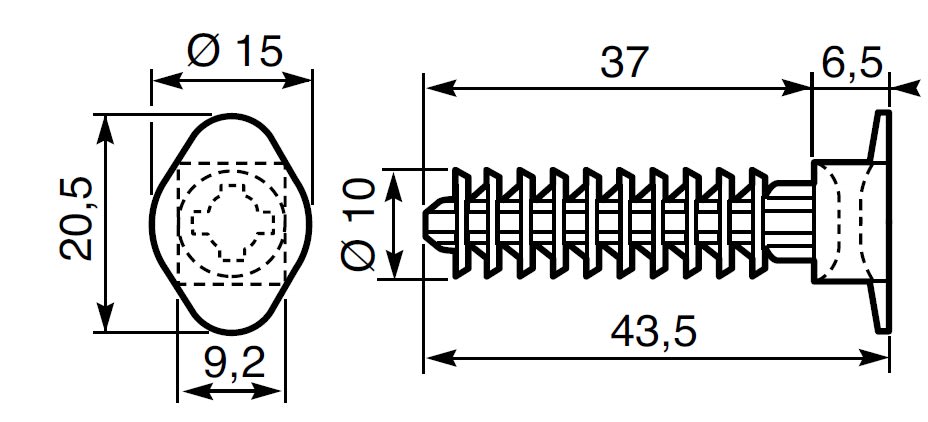 Tassello in plastica con alette. Diametro del foro 8 mm