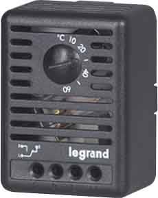 Termostato d\\'ambiente regolabile da 5 a 60°C. Fissaggio a scatto su guida DIN. Precisione 0,5. Intervallo di commutazione e regolazione: 2°C Portata contatto: in apertura 10A, in chiusura 5A