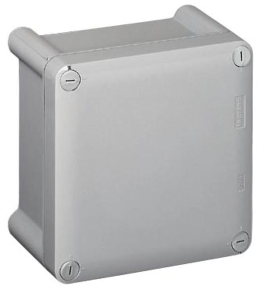 Scatola plastica 130 x 130 x 74 mm. IP66/IK08. Colore grigio T029. Pareti lisce. Coperchio opaco